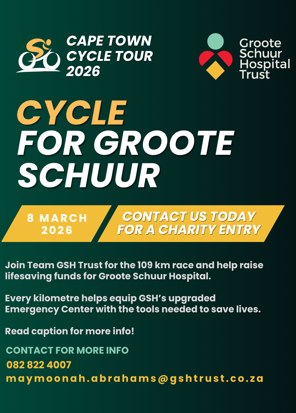 Join Team GSH Trust and cycle 109km Cape Town Cycle Tour 2026 to support lifesaving healthcare.